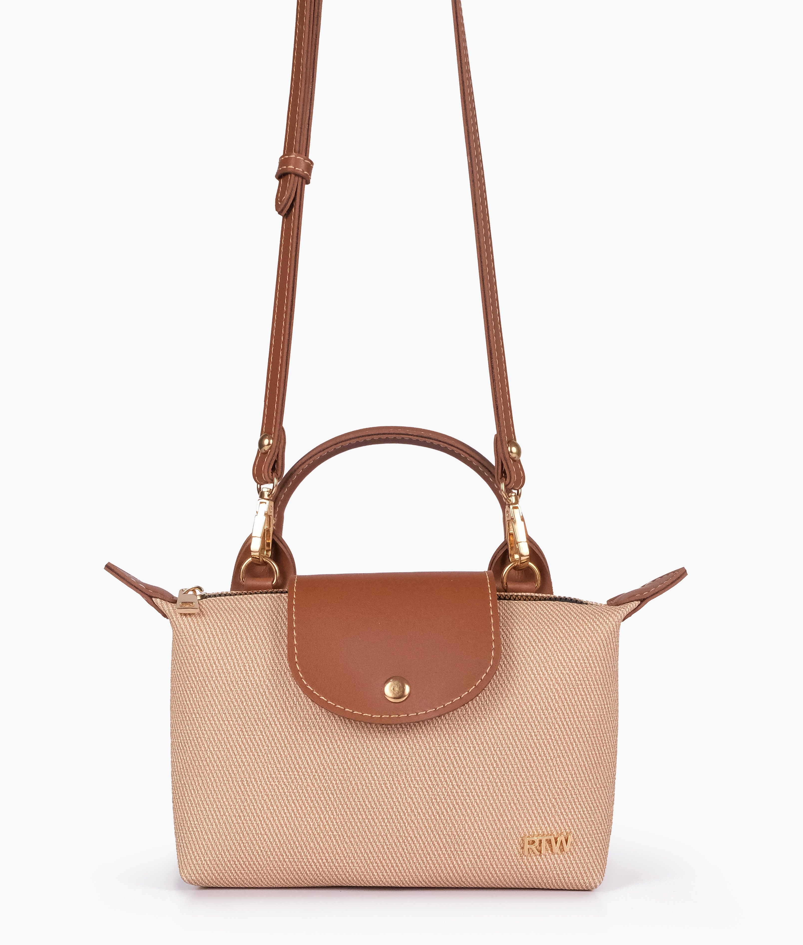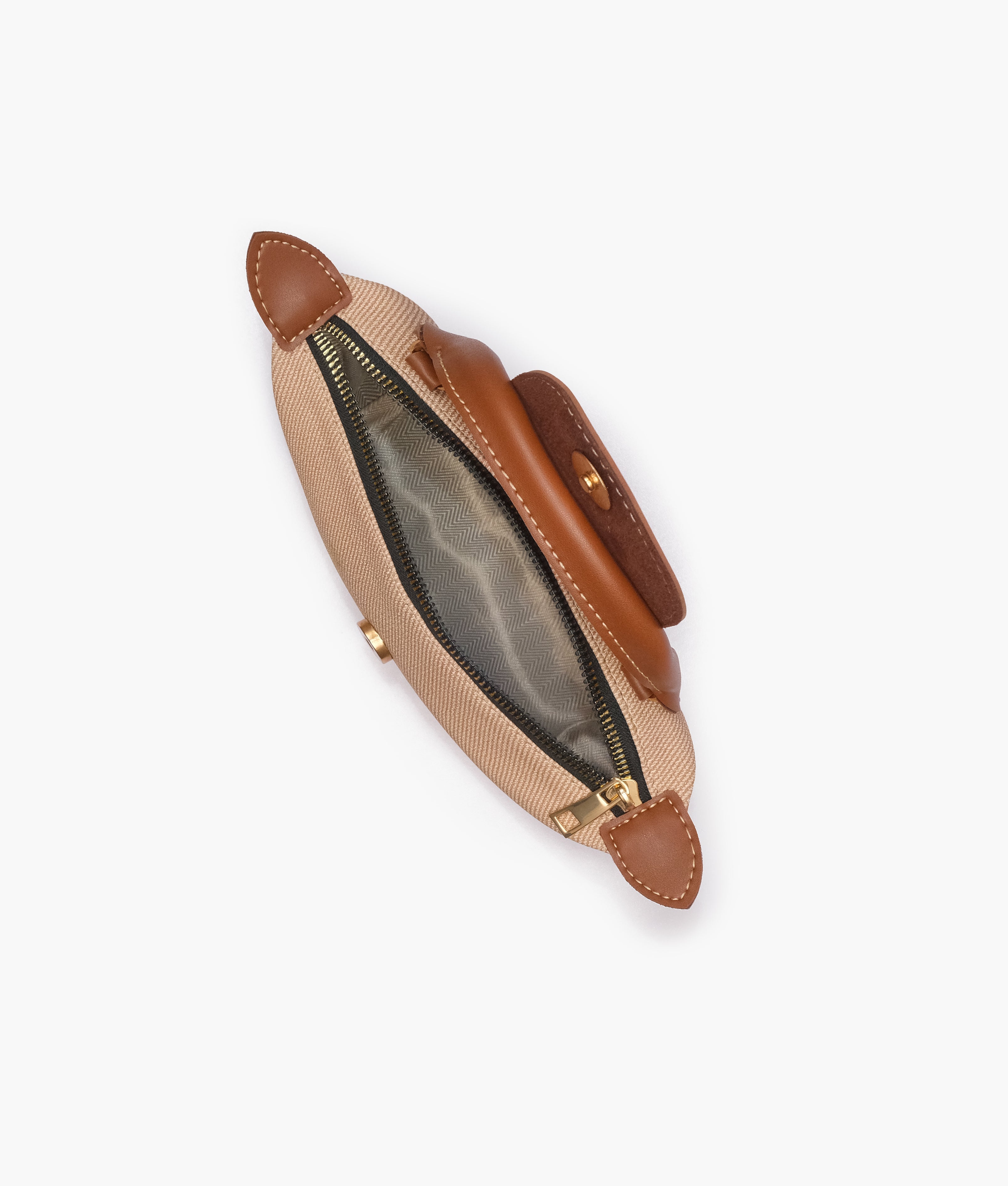 One main zipper compartment secured with magnetic button.